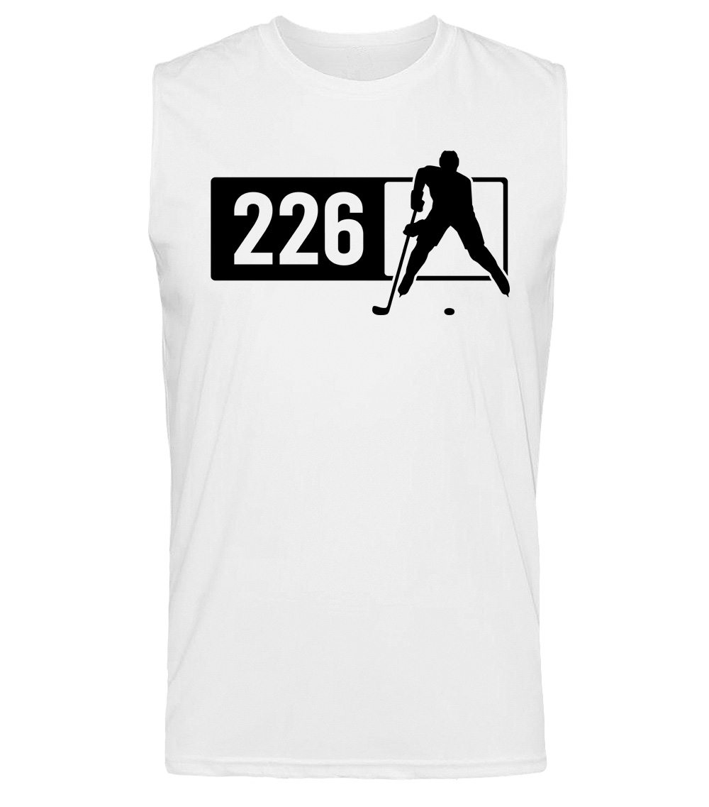 This premium sleeveless muscle shirt proudly displays the Ontario area code 226 in combination with our trademark silhouette. The fabric weight is 4 ounces and made from 100% polyester. Wash on cold and air dry.