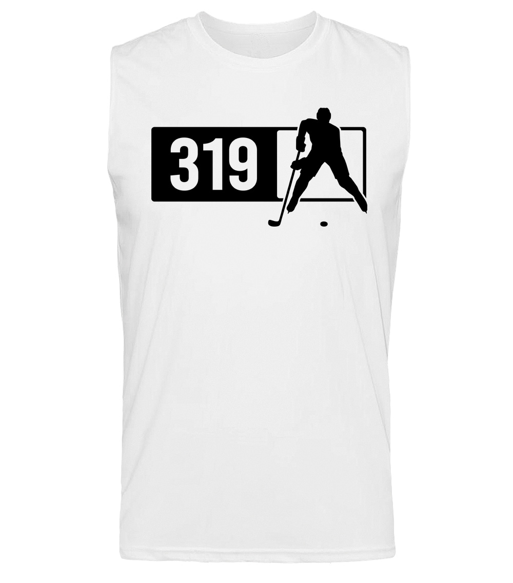 This premium sleeveless muscle shirt proudly displays the Iowa area code 319 in combination with our trademark silhouette. The fabric weight is 4 ounces and made from 100% polyester. Wash on cold and air dry.