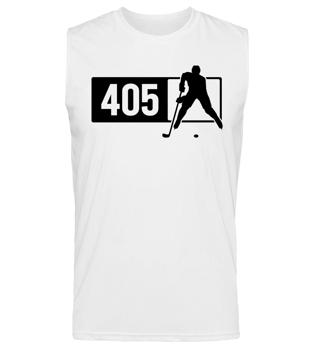 This premium sleeveless muscle shirt proudly displays the Oklahoma area code 405 in combination with our trademark silhouette. The fabric weight is 4 ounces and made from 100% polyester. Wash on cold and air dry.