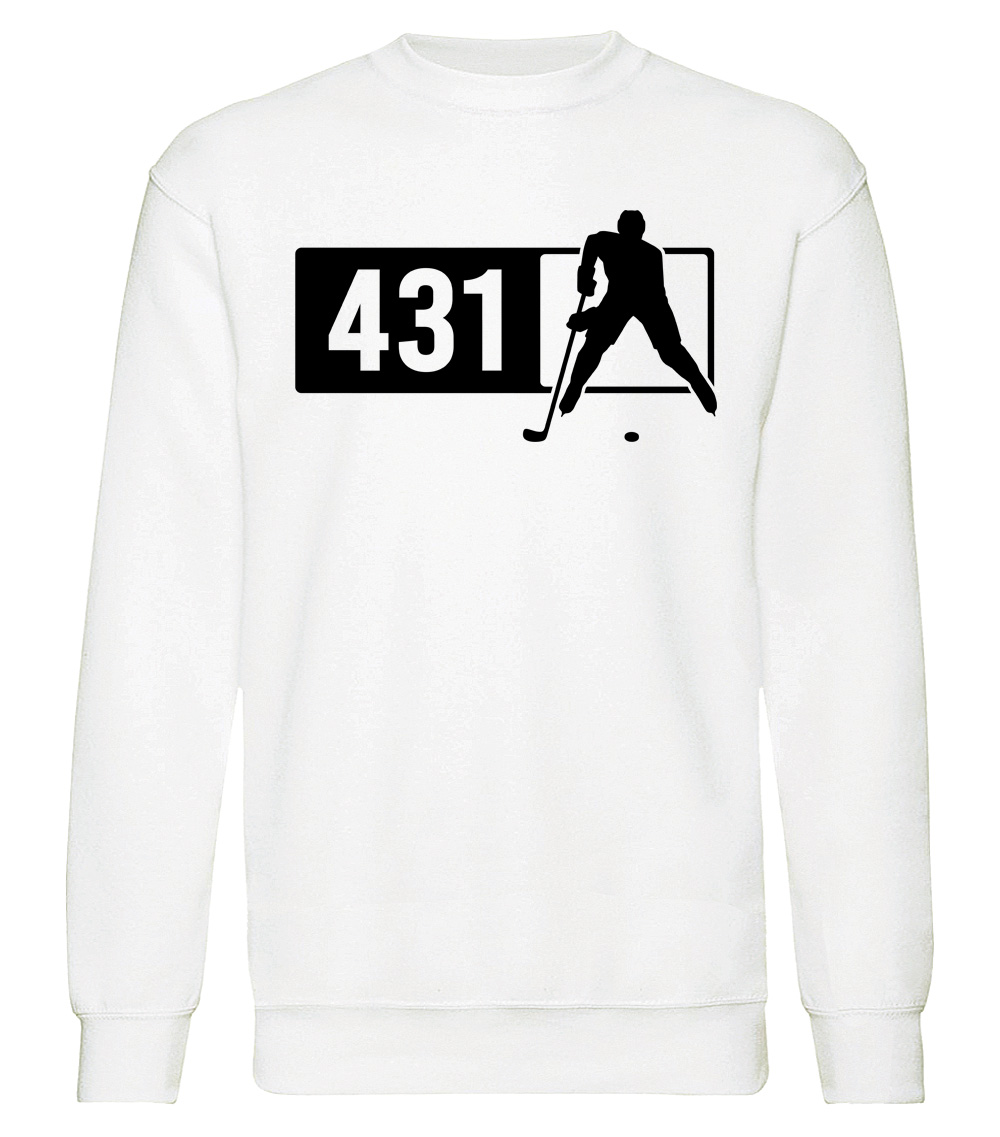 This premium blend sweatshirt proudly displays the Manitoba area code 431 in combination with our trademark silhouette. The fabric weight is 8.8 ounces and made from 65% ring spun cotton and 35% polyester. Wash on cold and air dry.