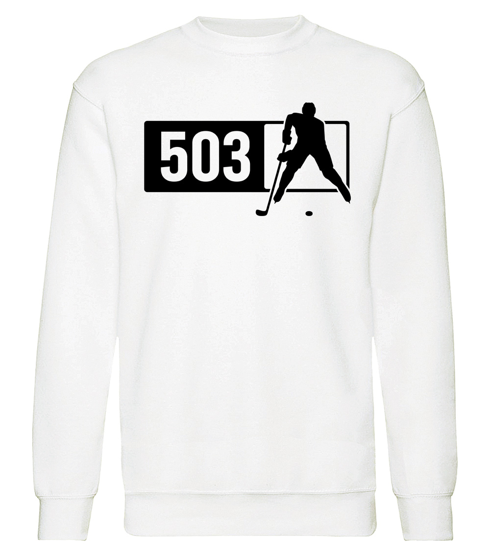This premium blend sweatshirt proudly displays the Oregon area code 503 in combination with our trademark silhouette. The fabric weight is 8.8 ounces and made from 65% ring spun cotton and 35% polyester. Wash on cold and air dry.
