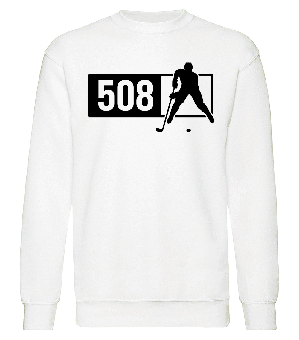 This premium blend sweatshirt proudly displays the Massachusetts area code 508 in combination with our trademark silhouette. The fabric weight is 8.8 ounces and made from 65% ring spun cotton and 35% polyester. Wash on cold and air dry.