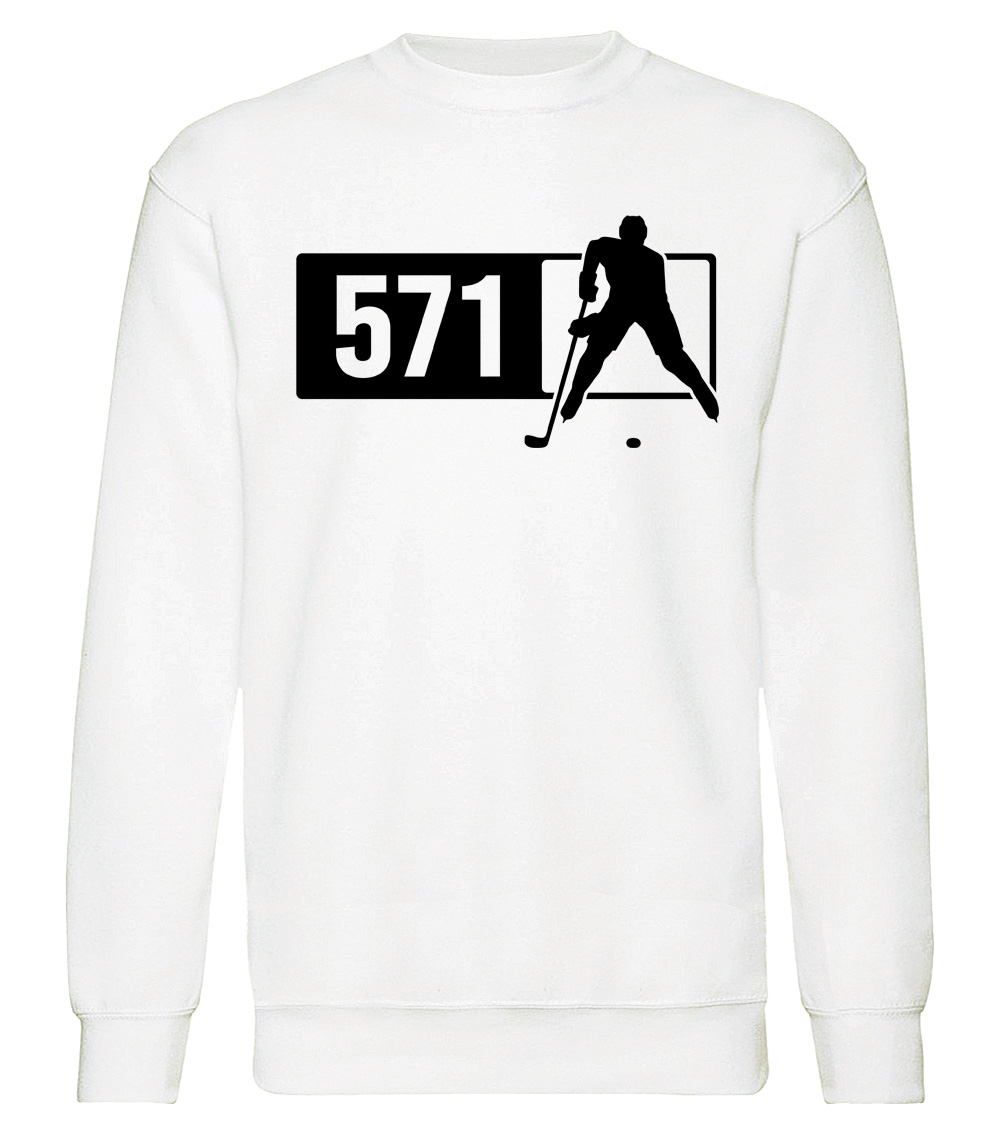 This premium blend sweatshirt proudly displays the Virginia area code 571 in combination with our trademark silhouette. The fabric weight is 8.8 ounces and made from 65% ring spun cotton and 35% polyester. Wash on cold and air dry.