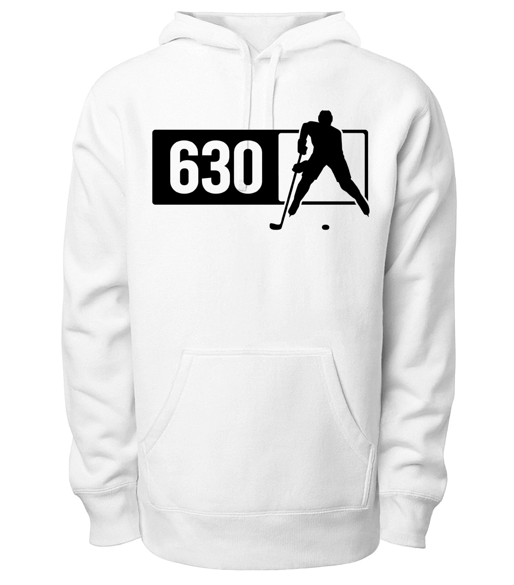 This premium blend hoodie proudly displays the Illinois area code 630 in combination with our trademark silhouette. The fabric weight is 8.8 ounces and made from 65% ring spun cotton and 35% polyester. Wash on cold and air dry.
