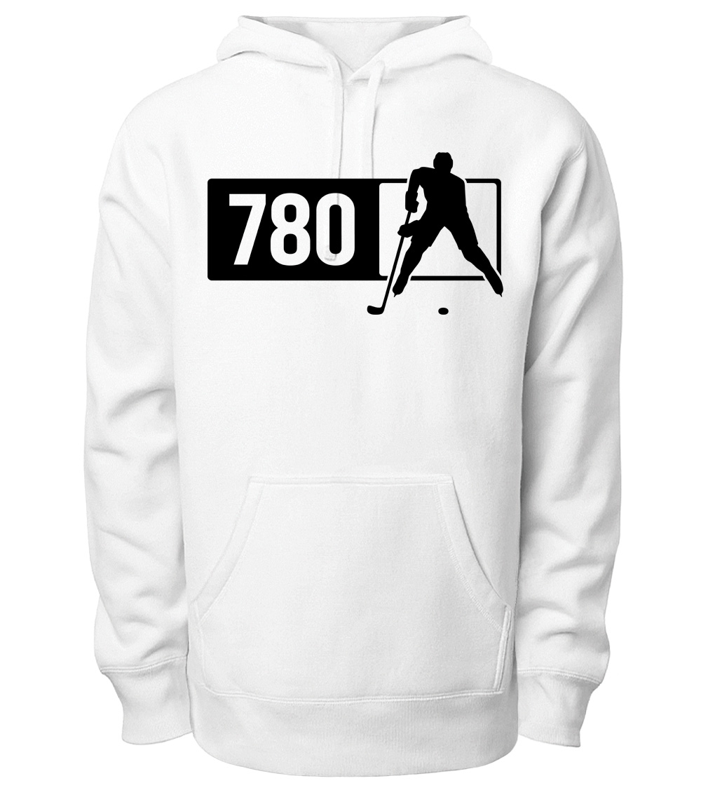 This premium blend hoodie proudly displays the Alberta area code 780 in combination with our trademark silhouette. The fabric weight is 8.8 ounces and made from 65% ring spun cotton and 35% polyester. Wash on cold and air dry.