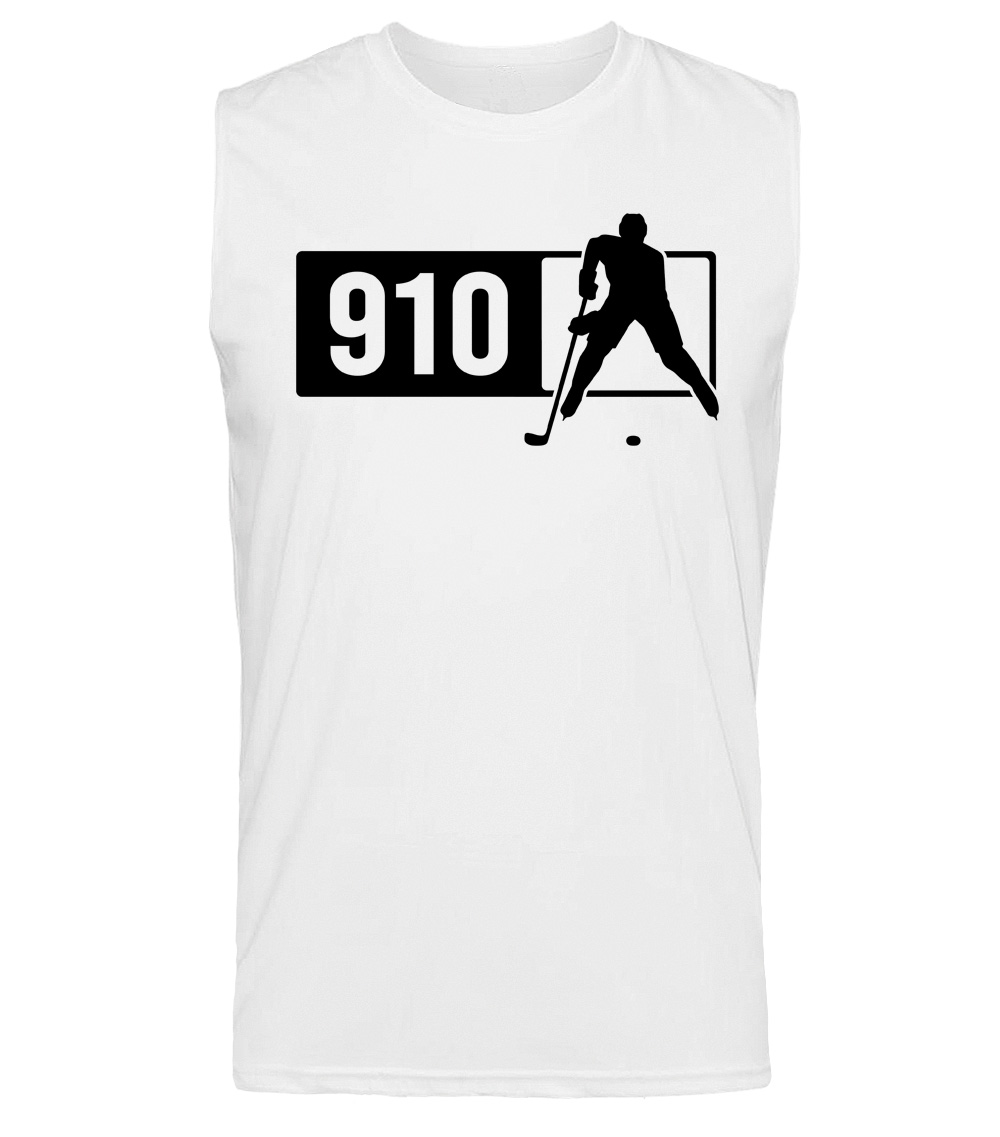 This premium sleeveless muscle shirt proudly displays the North Carolina area code 910 in combination with our trademark silhouette. The fabric weight is 4 ounces and made from 100% polyester. Wash on cold and air dry.