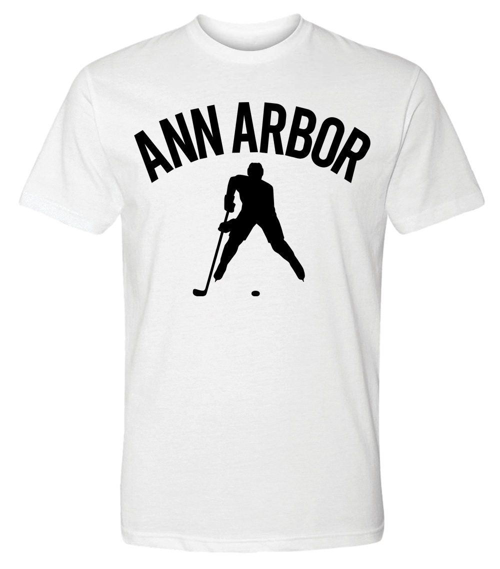 This premium tri-blend short sleeve shirt proudly displays the hockey loving city of Ann Arbor, USA in combination with our trademark silhouette. The fabric weight is 4.5 ounces and made from 25% ring spun cotton, 25% rayon, and 50% polyester. Wash on cold and air dry.