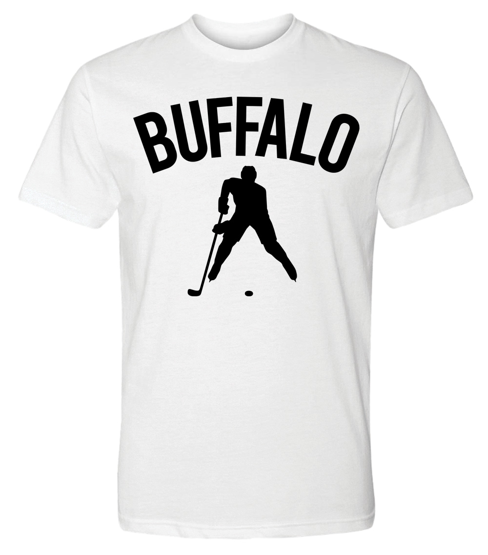 This premium tri-blend short sleeve shirt proudly displays the hockey loving city of Buffalo, USA in combination with our trademark silhouette. The fabric weight is 4.5 ounces and made from 25% ring spun cotton, 25% rayon, and 50% polyester. Wash on cold and air dry.