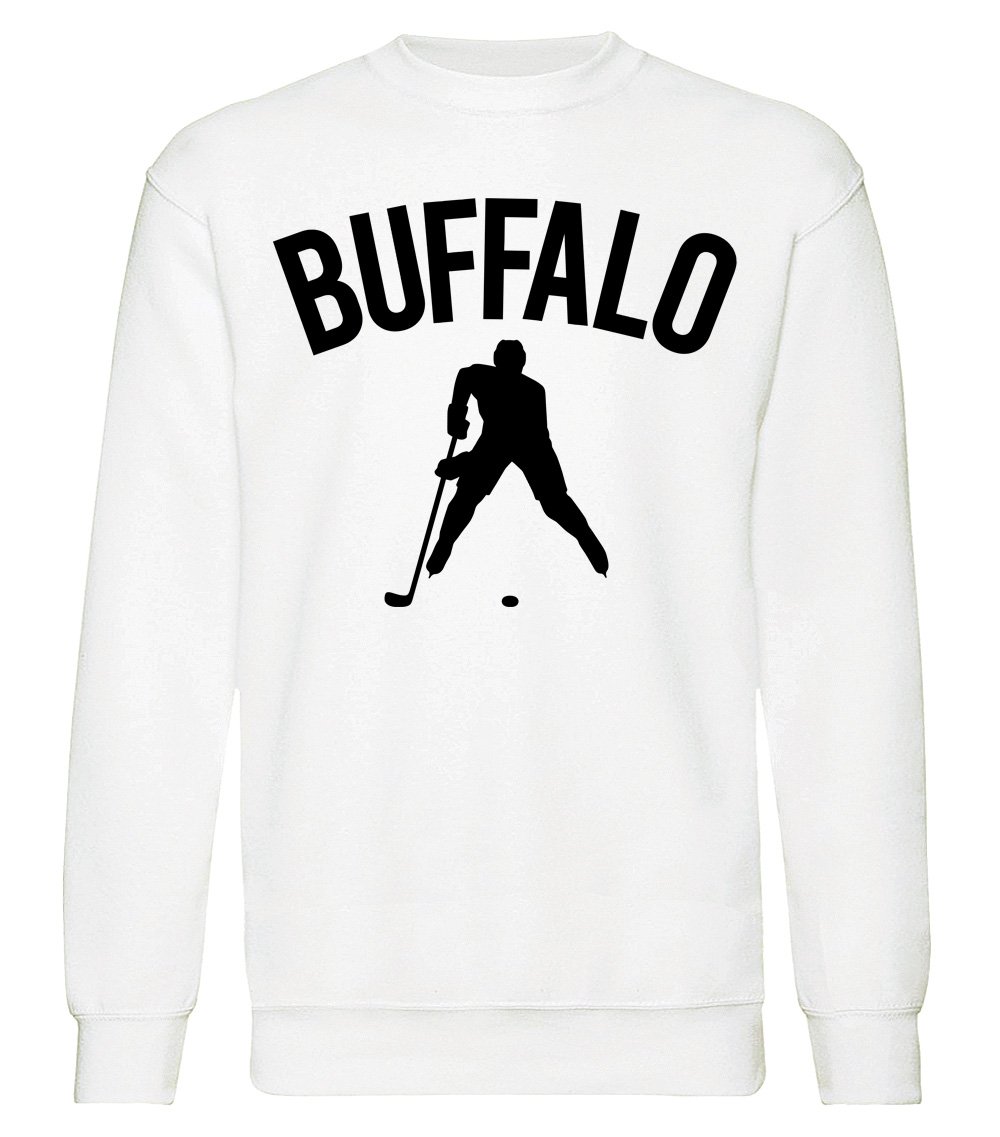 This premium blend sweatshirt proudly displays the hockey loving city of Buffalo, USA in combination with our trademark silhouette. The fabric weight is 8.8 ounces and made from 65% ring spun cotton and 35% polyester. Wash on cold and air dry.