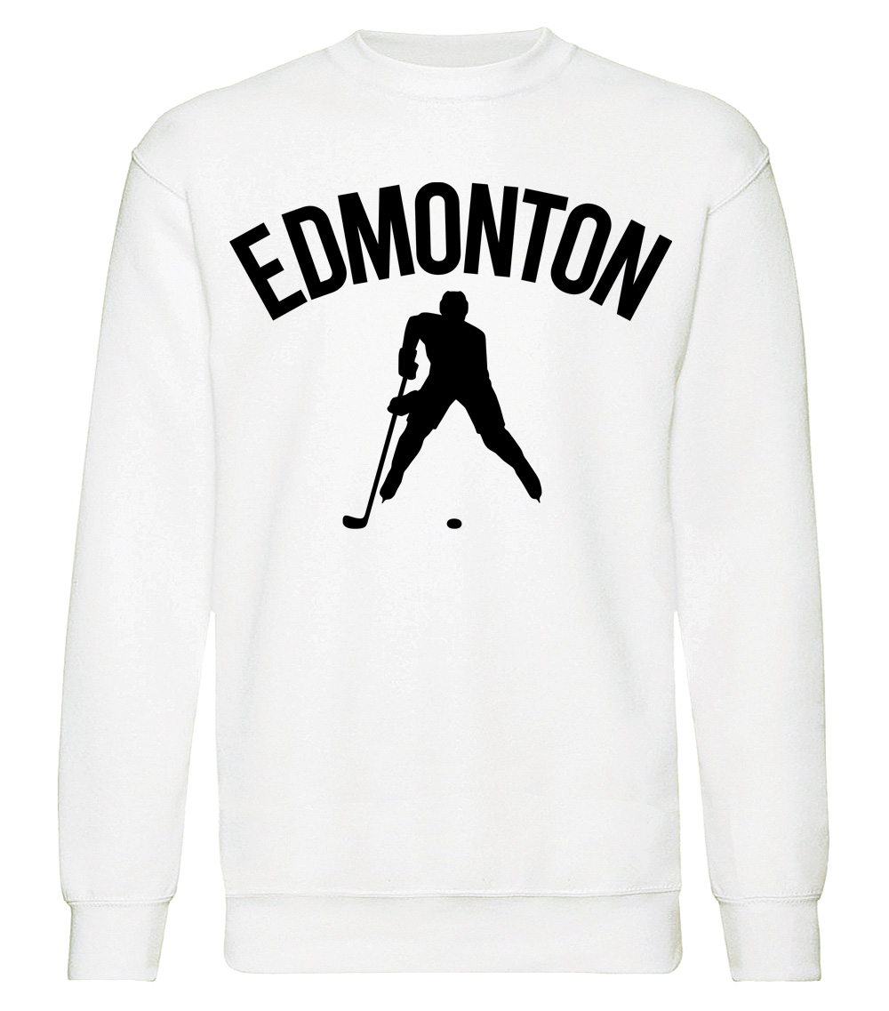 This premium blend sweatshirt proudly displays the hockey loving city of Edmonton, CANADA in combination with our trademark silhouette. The fabric weight is 8.8 ounces and made from 65% ring spun cotton and 35% polyester. Wash on cold and air dry.