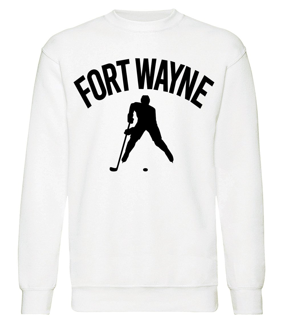 This premium blend sweatshirt proudly displays the hockey loving city of Fort Wayne, USA in combination with our trademark silhouette. The fabric weight is 8.8 ounces and made from 65% ring spun cotton and 35% polyester. Wash on cold and air dry.