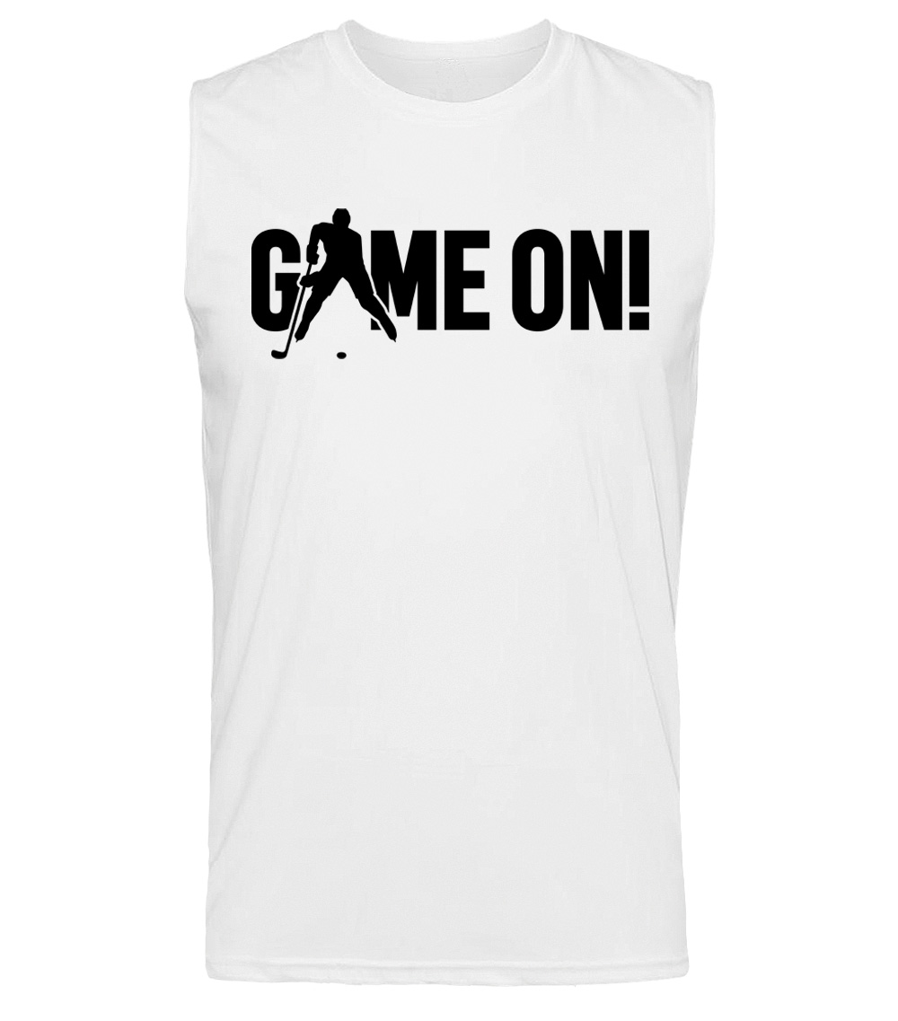 This premium sleeveless muscle shirt displays our 'Game On!' design. The fabric weight is 4 ounces and made from 100% polyester. Wash on cold and air dry.