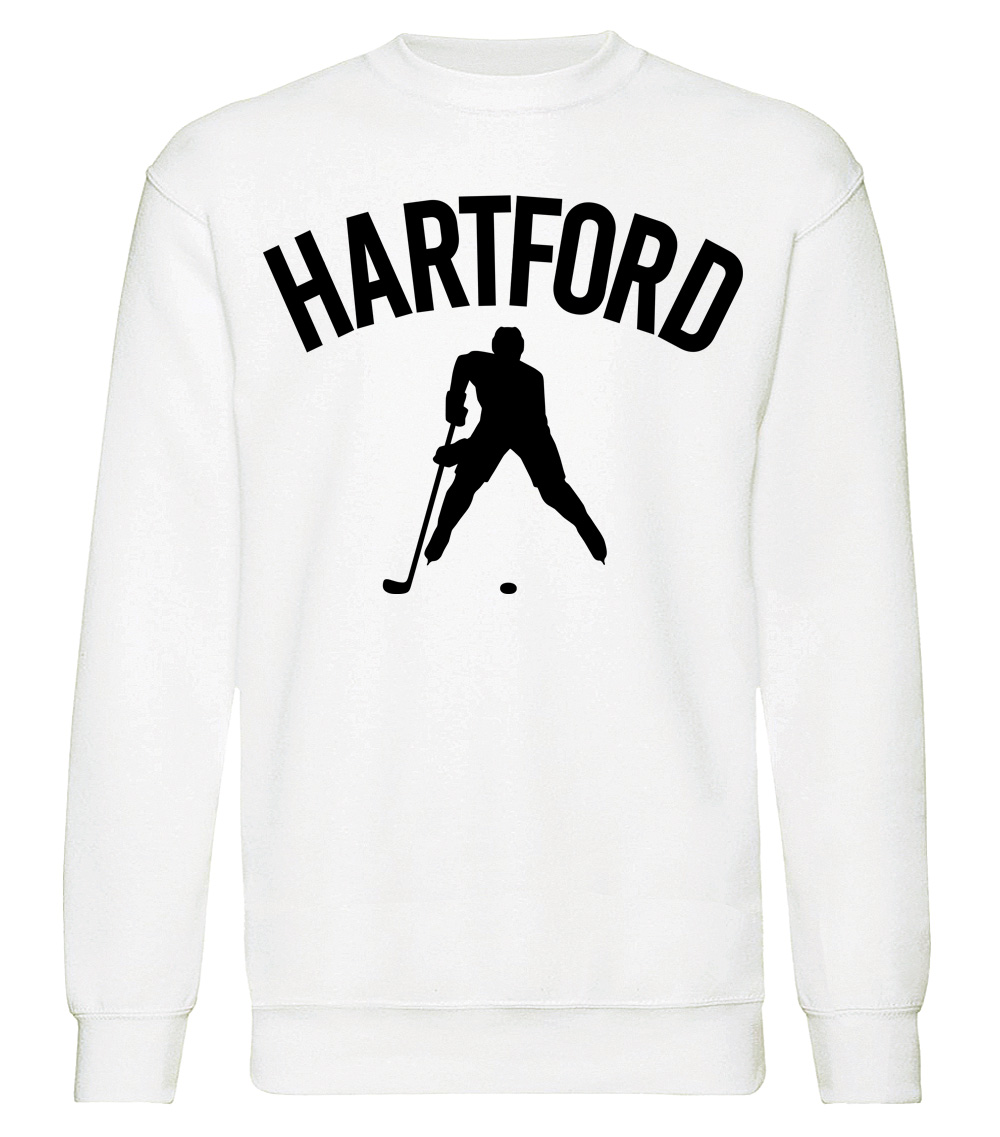 This premium blend sweatshirt proudly displays the hockey loving city of Hartford, USA in combination with our trademark silhouette. The fabric weight is 8.8 ounces and made from 65% ring spun cotton and 35% polyester. Wash on cold and air dry.