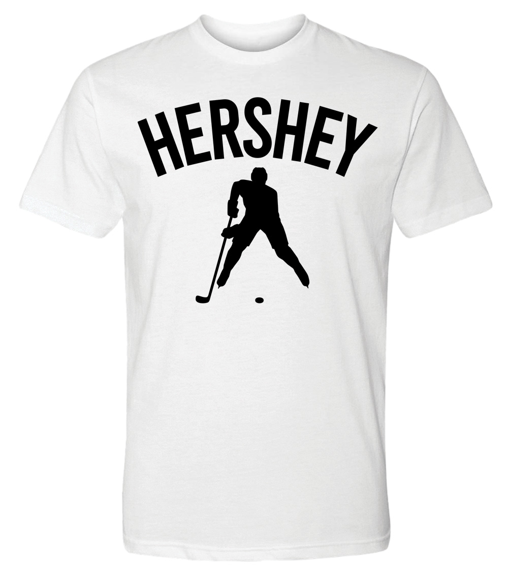This premium tri-blend short sleeve shirt proudly displays the hockey loving city of Hershey, USA in combination with our trademark silhouette. The fabric weight is 4.5 ounces and made from 25% ring spun cotton, 25% rayon, and 50% polyester. Wash on cold and air dry.