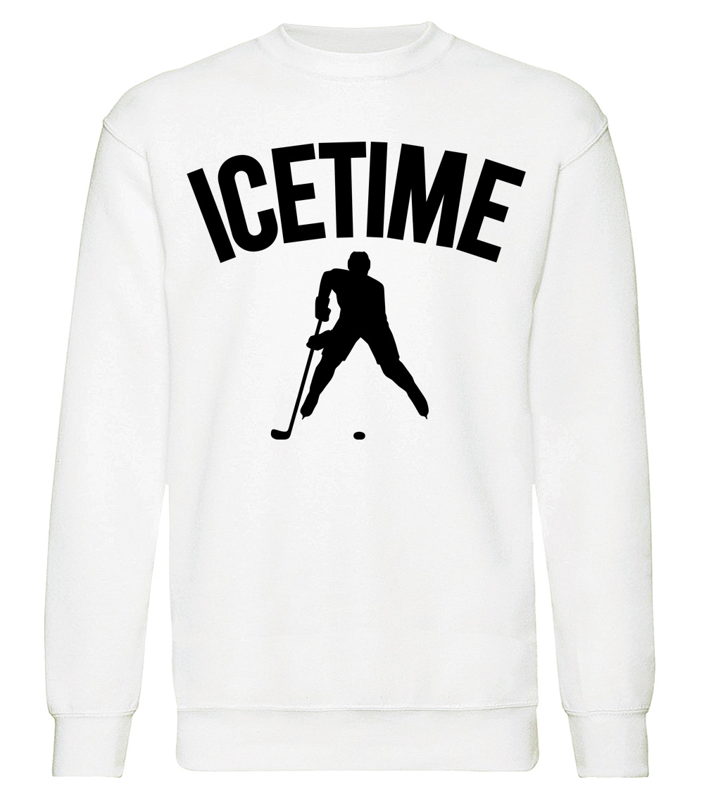 This premium blend sweatshirt displays our 'Icetime' bonus design. The fabric weight is a 8.8 ounces and made from 65% ring spun cotton and 35% polyester. Wash on cold and air dry.