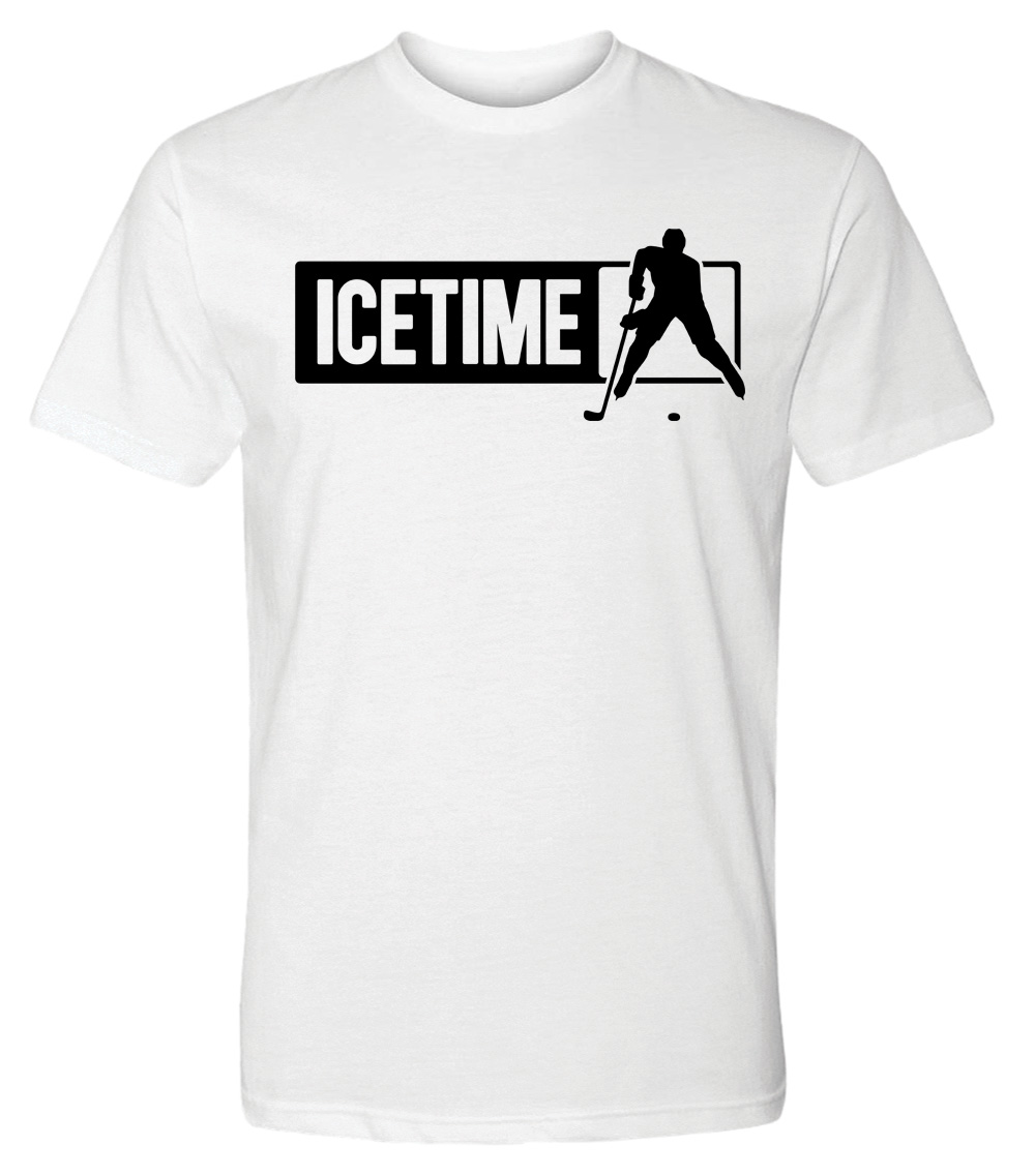 This premium tri-blend short sleeve shirt displays our 'Icetime' design. The fabric weight is a 4.5 ounces and made from 25% ring spun cotton, 25% rayon, and 50% polyester. Wash on cold and air dry.