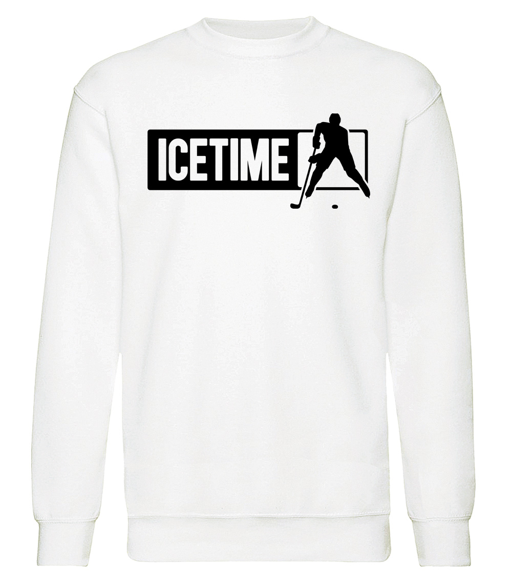 This premium blend sweatshirt displays our 'Icetime' design. The fabric weight is a 8.8 ounces and made from 65% ring spun cotton and 35% polyester. Wash on cold and air dry.