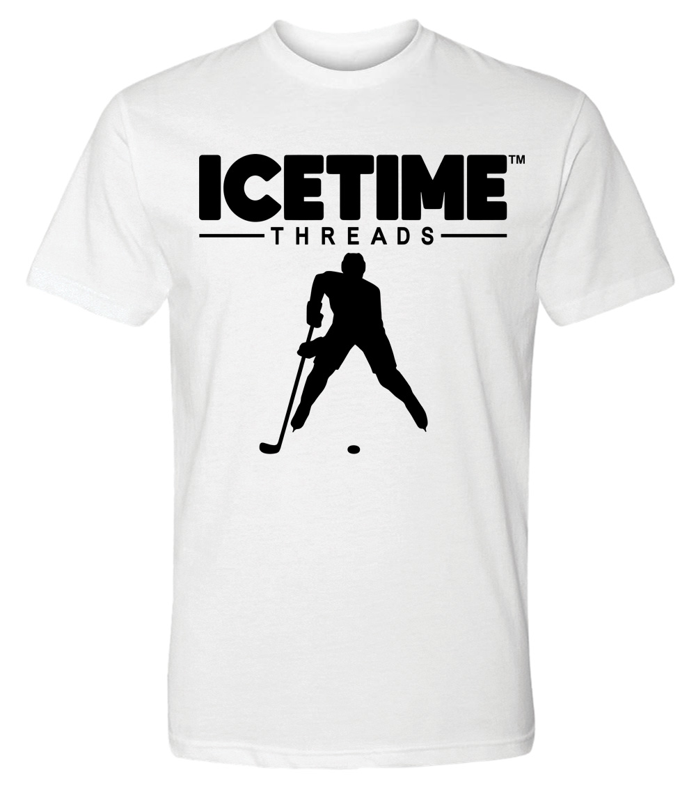This premium tri-blend short sleeve shirt displays our signature silhouette, the 'Icetime Threads' design. The fabric weight is 4.5 ounces and made from 25% ring spun cotton, 25% rayon, and 50% polyester. Wash on cold and air dry.