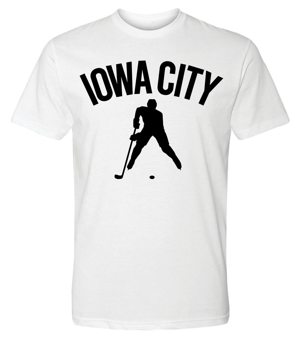 This premium tri-blend short sleeve shirt proudly displays the hockey loving city of Iowa City, USA in combination with our trademark silhouette. The fabric weight is 4.5 ounces and made from 25% ring spun cotton, 25% rayon, and 50% polyester. Wash on cold and air dry.