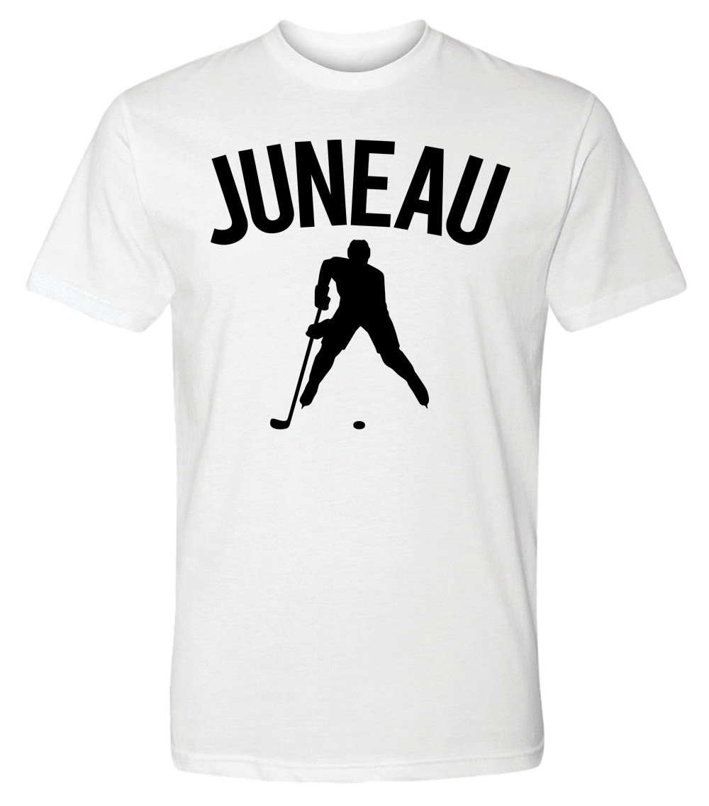 This premium tri-blend short sleeve shirt proudly displays the hockey loving city of Juneau, USA in combination with our trademark silhouette. The fabric weight is 4.5 ounces and made from 25% ring spun cotton, 25% rayon, and 50% polyester. Wash on cold and air dry.