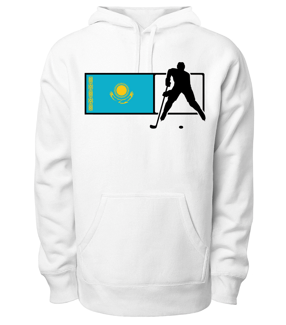 This premium blend hoodie proudly displays the official country flag of Kazakhstan in combination with our trademark silhouette. The fabric weight is 8.8 ounces and made from 65% ring spun cotton and 35% polyester. Wash on cold and air dry.