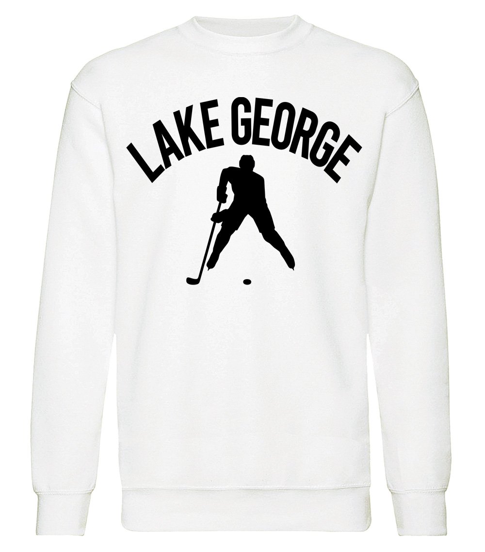This premium blend sweatshirt proudly displays the hockey loving city of Lake George, USA in combination with our trademark silhouette. The fabric weight is 8.8 ounces and made from 65% ring spun cotton and 35% polyester. Wash on cold and air dry.
