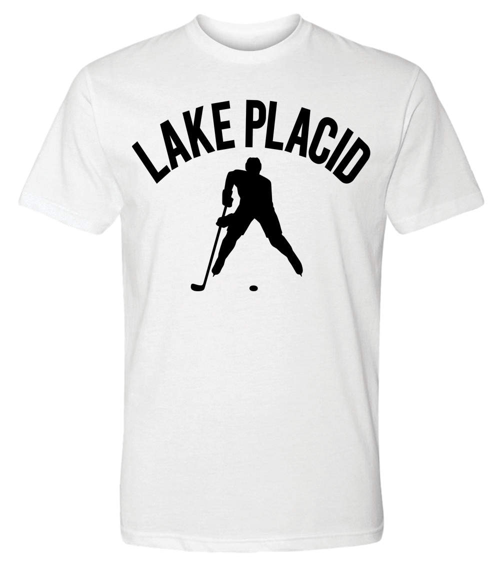 This premium tri-blend short sleeve shirt proudly displays the hockey loving city of Lake Placid, USA in combination with our trademark silhouette. The fabric weight is 4.5 ounces and made from 25% ring spun cotton, 25% rayon, and 50% polyester. Wash on cold and air dry.