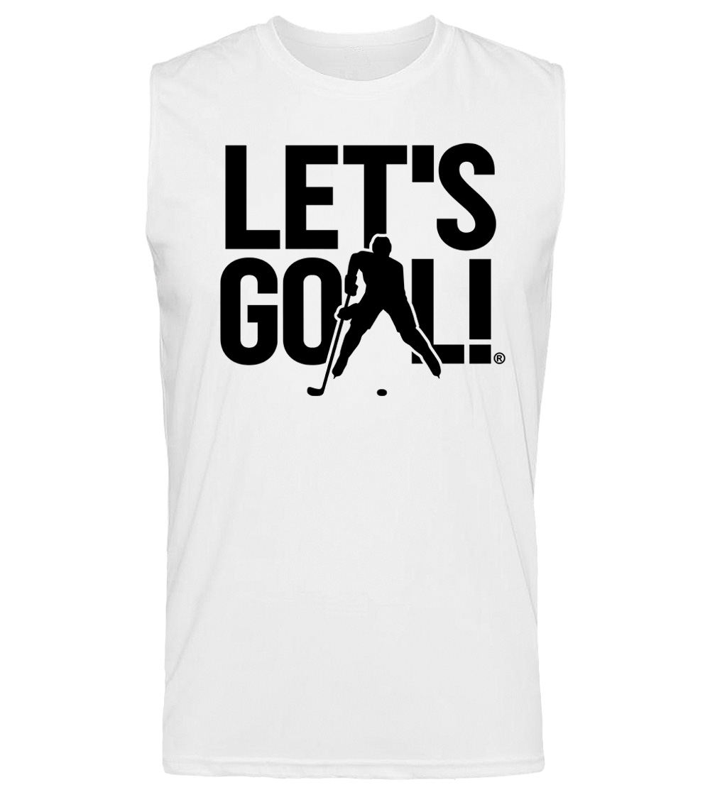 This premium sleeveless muscle shirt displays one of our 'Let's Goal!' designs. The fabric weight is 4 ounces and made from 100% polyester. Wash on cold and air dry.