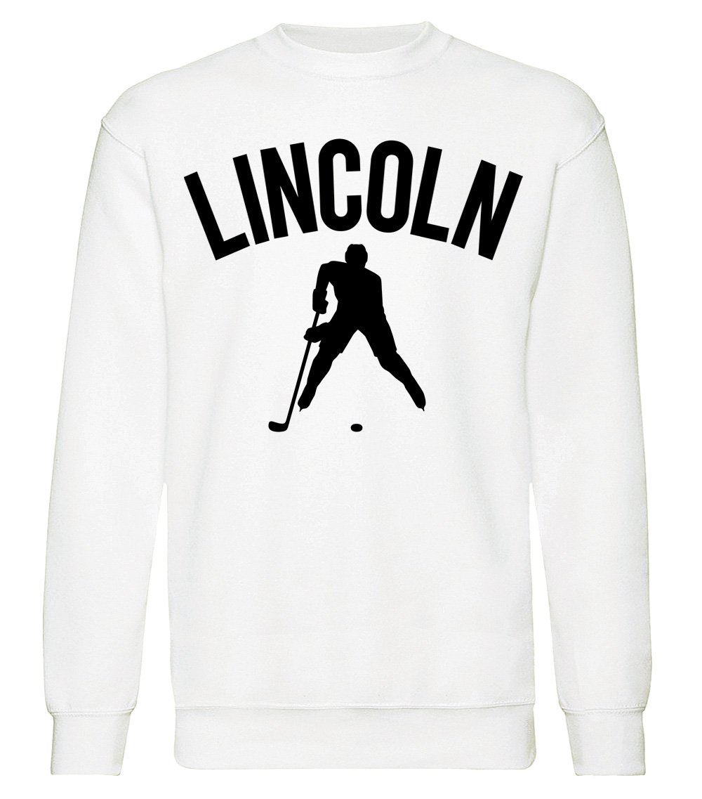 This premium blend sweatshirt proudly displays the hockey loving city of Lincoln, USA in combination with our trademark silhouette. The fabric weight is 8.8 ounces and made from 65% ring spun cotton and 35% polyester. Wash on cold and air dry.