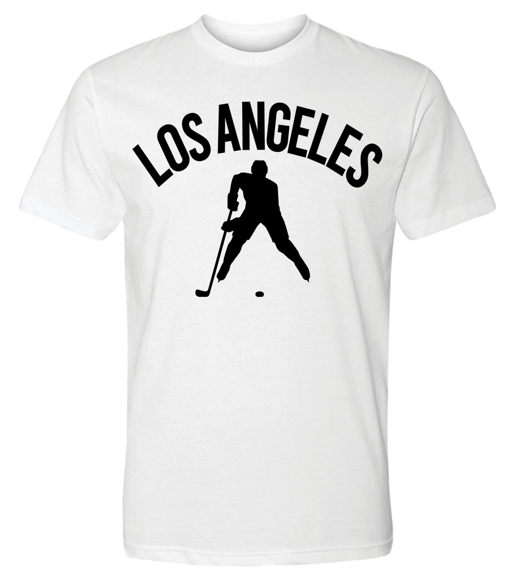 This premium tri-blend short sleeve shirt proudly displays the hockey loving city of Los Angeles, USA in combination with our trademark silhouette. It's design #1 of 2 for Los Angeles. The fabric weight is 4.5 ounces and made from 25% ring spun cotton, 25% rayon, and 50% polyester. Wash on cold and air dry.