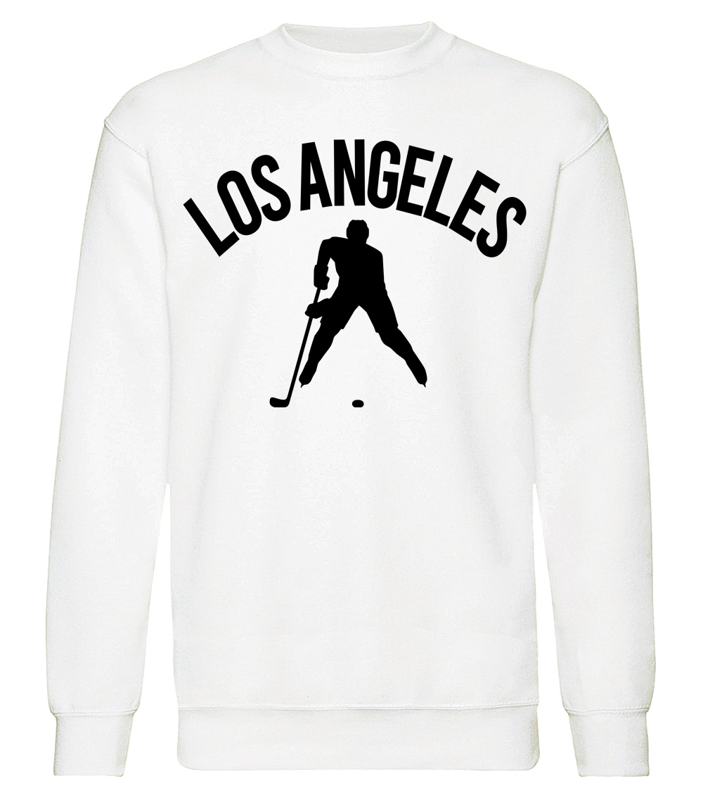 This premium blend sweatshirt proudly displays the hockey loving city of Los Angeles, USA in combination with our trademark silhouette. It's design #1 of 2 for Los Angeles. The fabric weight is 8.8 ounces and made from 65% ring spun cotton and 35% polyester. Wash on cold and air dry.