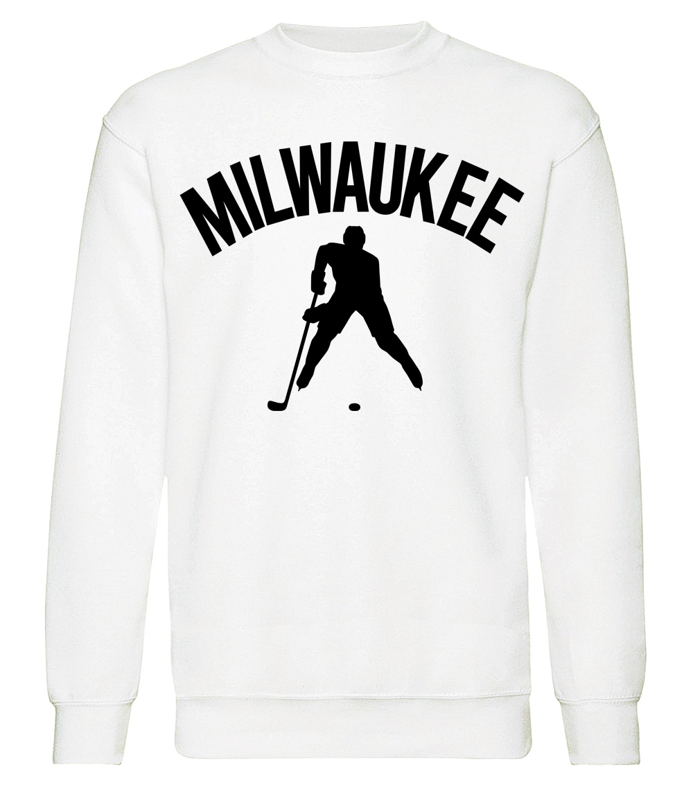 This premium blend sweatshirt proudly displays the hockey loving city of Milwaukee, USA in combination with our trademark silhouette. The fabric weight is 8.8 ounces and made from 65% ring spun cotton and 35% polyester. Wash on cold and air dry.