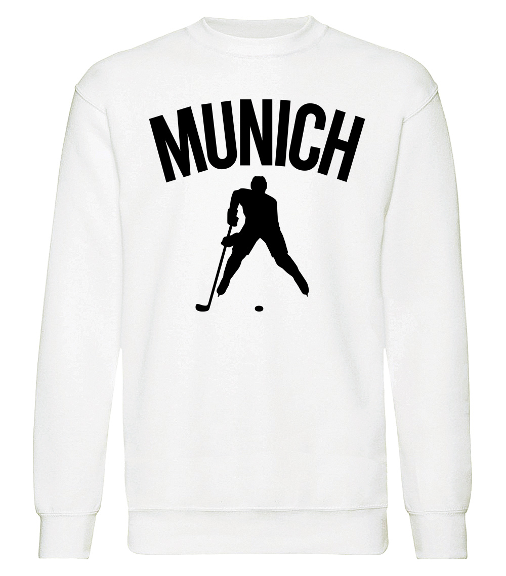 This premium blend sweatshirt proudly displays the hockey loving city of Munich, GERMANY in combination with our trademark silhouette. The fabric weight is 8.8 ounces and made from 65% ring spun cotton and 35% polyester. Wash on cold and air dry.