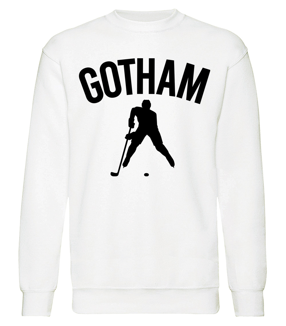This premium blend sweatshirt proudly displays the New York, USA 'Gotham' design. It's design #4 of 4 for New York. The fabric weight is 8.8 ounces and made from 65% ring spun cotton and 35% polyester. Wash on cold and air dry.