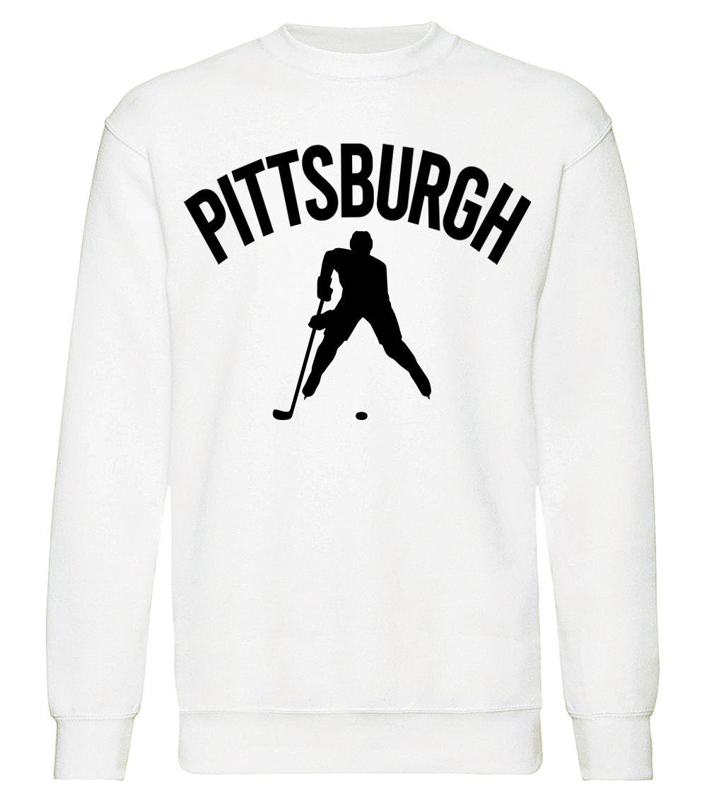 This premium blend sweatshirt proudly displays the hockey loving city of Pittsburgh, USA in combination with our trademark silhouette. It's design #1 of 2 for Pittsburgh. The fabric weight is 8.8 ounces and made from 65% ring spun cotton and 35% polyester. Wash on cold and air dry.