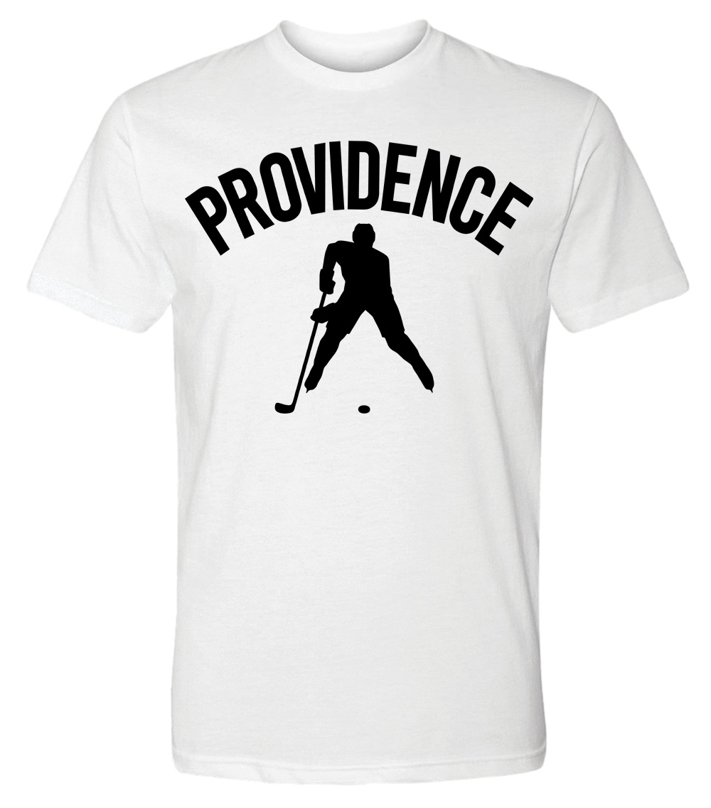 This premium tri-blend short sleeve shirt proudly displays the hockey loving city of Providence, USA in combination with our trademark silhouette. The fabric weight is 4.5 ounces and made from 25% ring spun cotton, 25% rayon, and 50% polyester. Wash on cold and air dry.