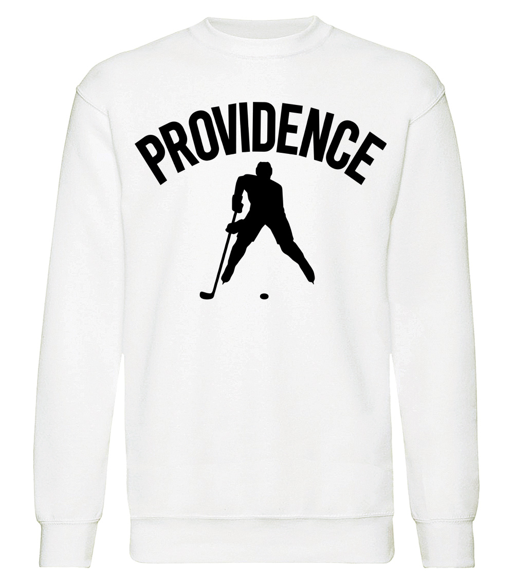 This premium blend sweatshirt proudly displays the hockey loving city of Providence, USA in combination with our trademark silhouette. The fabric weight is 8.8 ounces and made from 65% ring spun cotton and 35% polyester. Wash on cold and air dry.