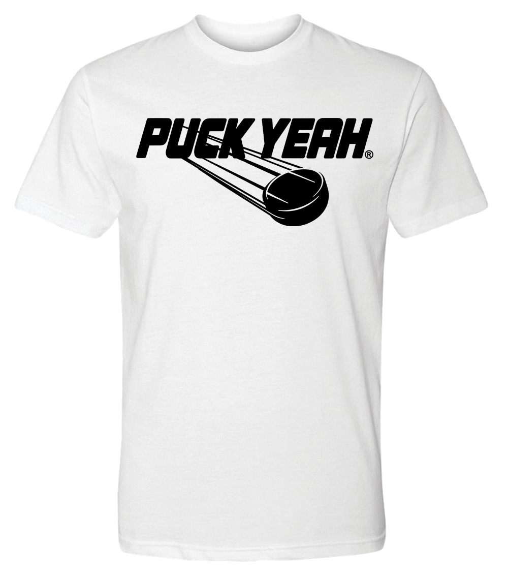 This premium tri-blend short sleeve shirt displays our 'Puck Yeah' bonus design. The fabric weight is a 4.5 ounces and made from 25% ring spun cotton, 25% rayon, and 50% polyester. Wash on cold and air dry.