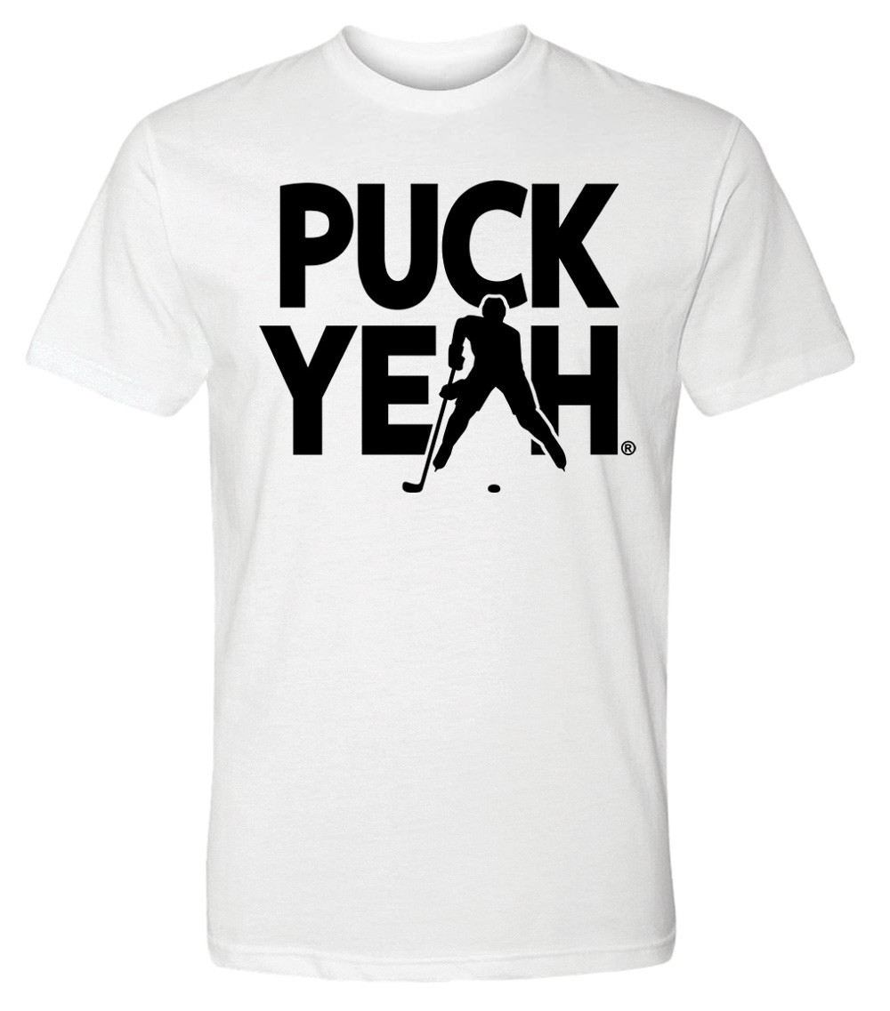 This premium tri-blend short sleeve shirt displays our 'Puck Yeah' design. The fabric weight is a 4.5 ounces and made from 25% ring spun cotton, 25% rayon, and 50% polyester. Wash on cold and air dry.