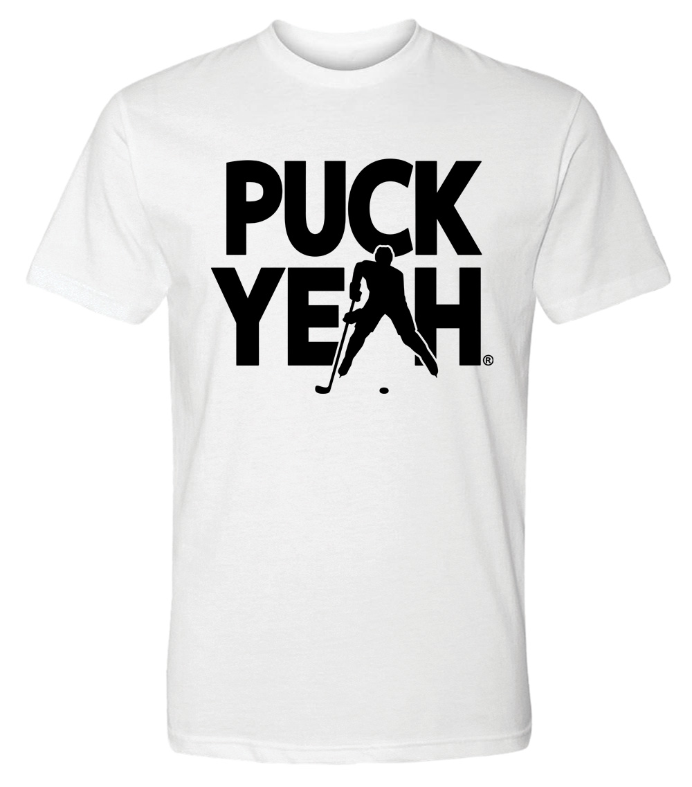 This premium tri-blend short sleeve shirt displays our 'Puck Yeah' design. The fabric weight is 4.5 ounces and made from 25% ring spun cotton, 25% rayon, and 50% polyester. Wash on cold and air dry.