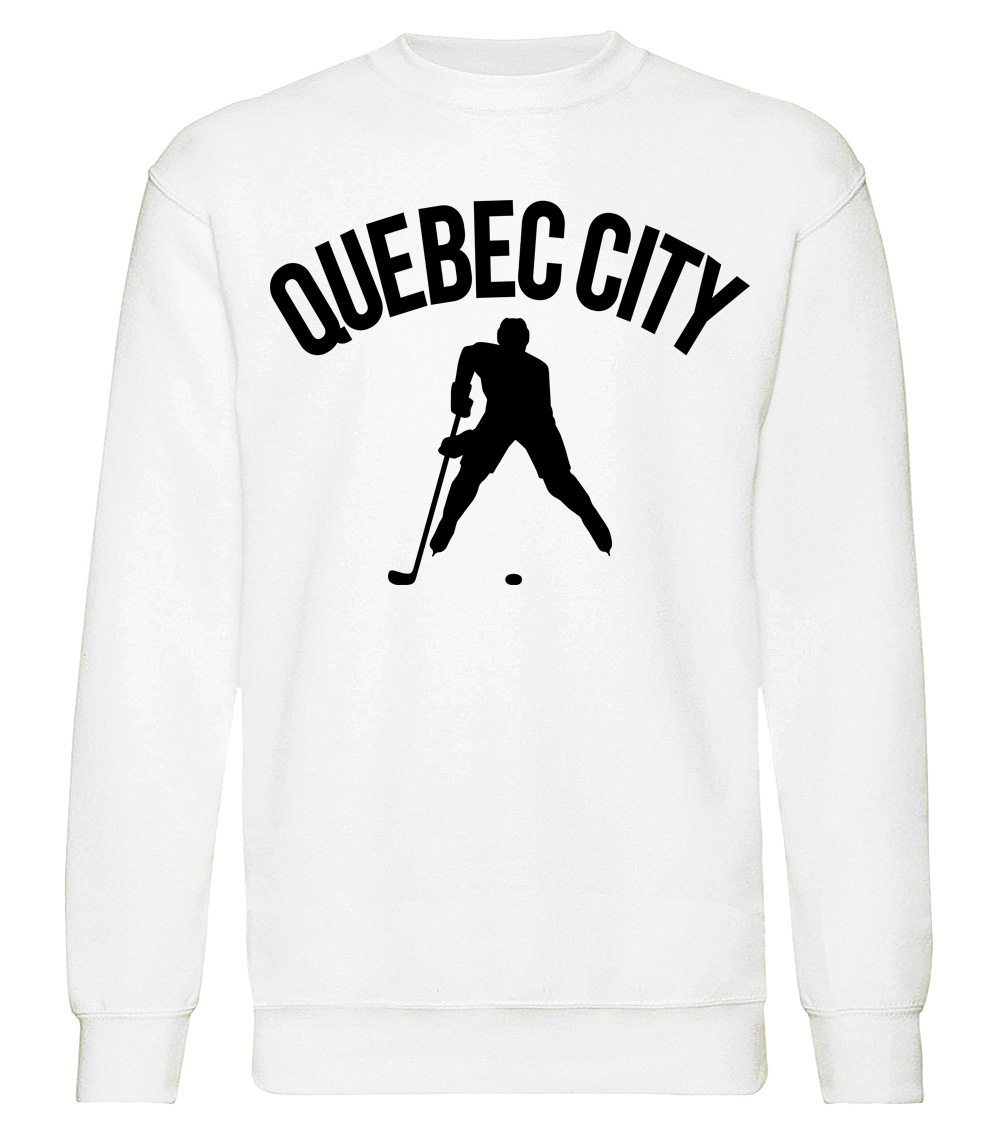 This premium blend sweatshirt proudly displays the hockey loving city of Quebec City, CANADA in combination with our trademark silhouette. The fabric weight is 8.8 ounces and made from 65% ring spun cotton and 35% polyester. Wash on cold and air dry.