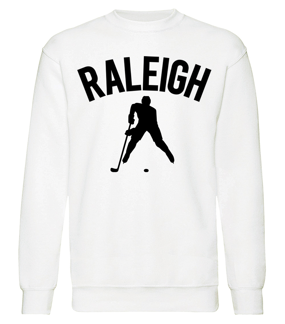 This premium blend sweatshirt proudly displays the hockey loving city of Raleigh, USA in combination with our trademark silhouette. The fabric weight is 8.8 ounces and made from 65% ring spun cotton and 35% polyester. Wash on cold and air dry.