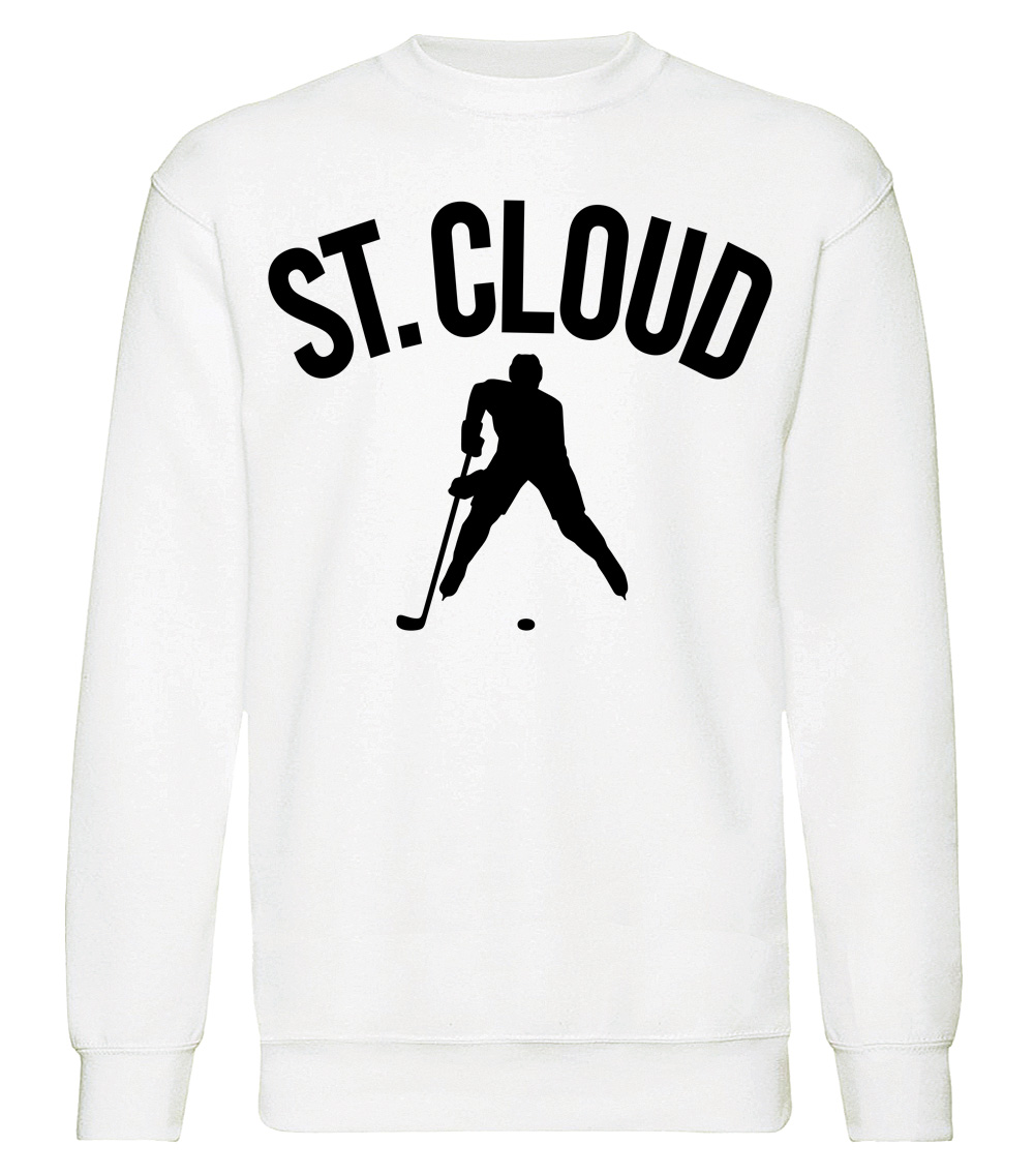 This premium blend sweatshirt proudly displays the hockey loving city of Saint Cloud, USA in combination with our trademark silhouette. The fabric weight is 8.8 ounces and made from 65% ring spun cotton and 35% polyester. Wash on cold and air dry.