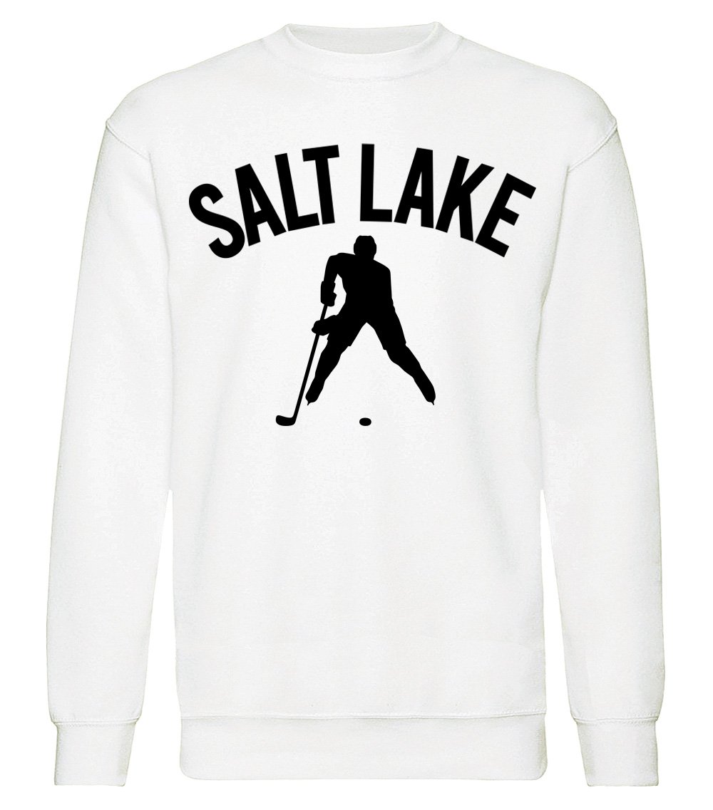 This premium blend sweatshirt proudly displays the hockey loving city of Salt Lake, USA in combination with our trademark silhouette. The fabric weight is 8.8 ounces and made from 65% ring spun cotton and 35% polyester. Wash on cold and air dry.