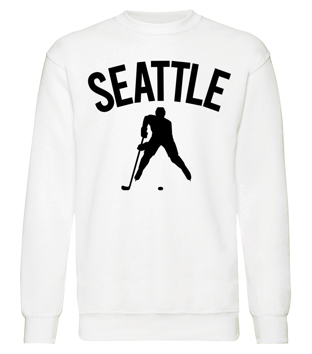 This premium blend sweatshirt proudly displays the hockey loving city of Seattle, USA in combination with our trademark silhouette. The fabric weight is 8.8 ounces and made from 65% ring spun cotton and 35% polyester. Wash on cold and air dry.