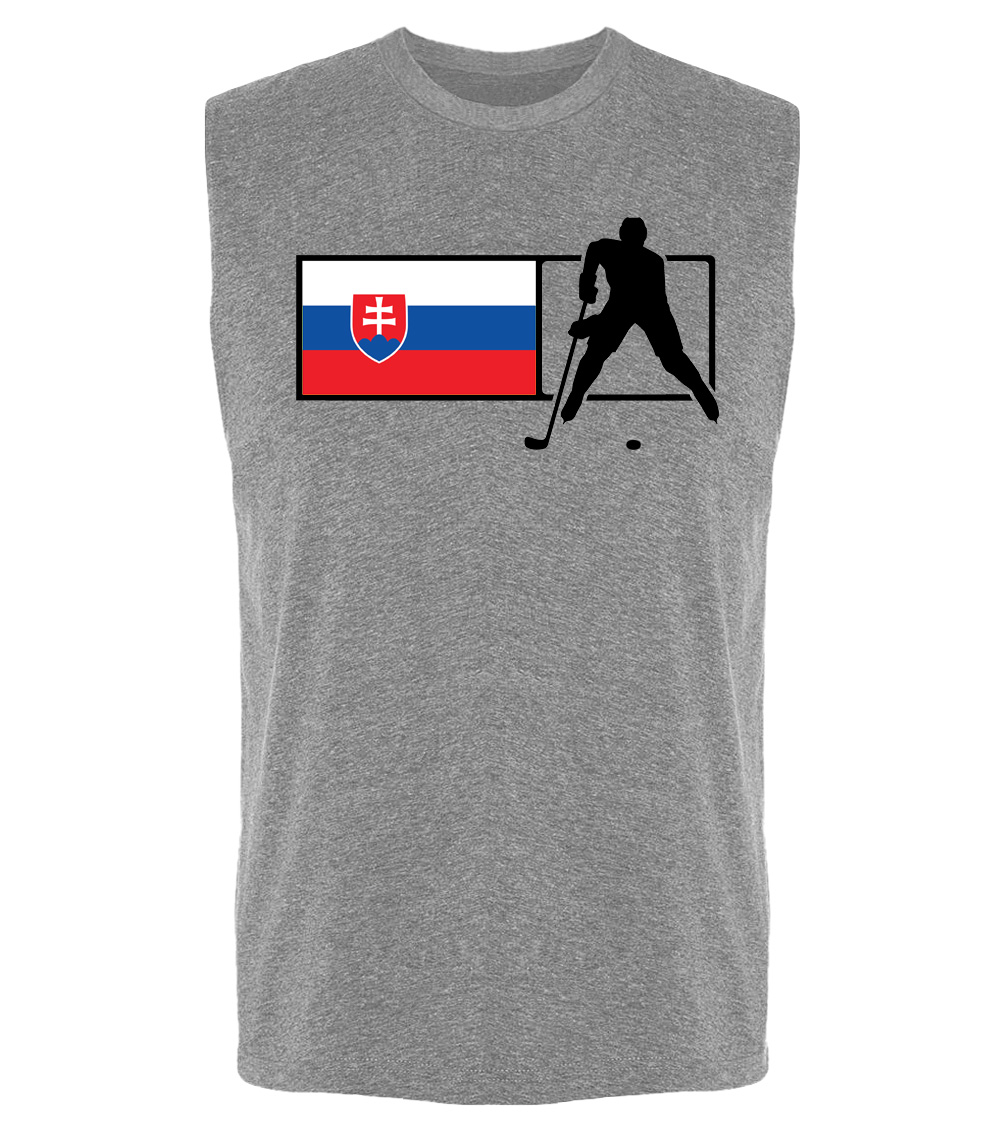 This premium sleeveless muscle shirt proudly displays the official country flag of Slovakia in combination with our trademark silhouette. The fabric weight is 4 ounces and made from 100% polyester. Wash on cold and air dry.