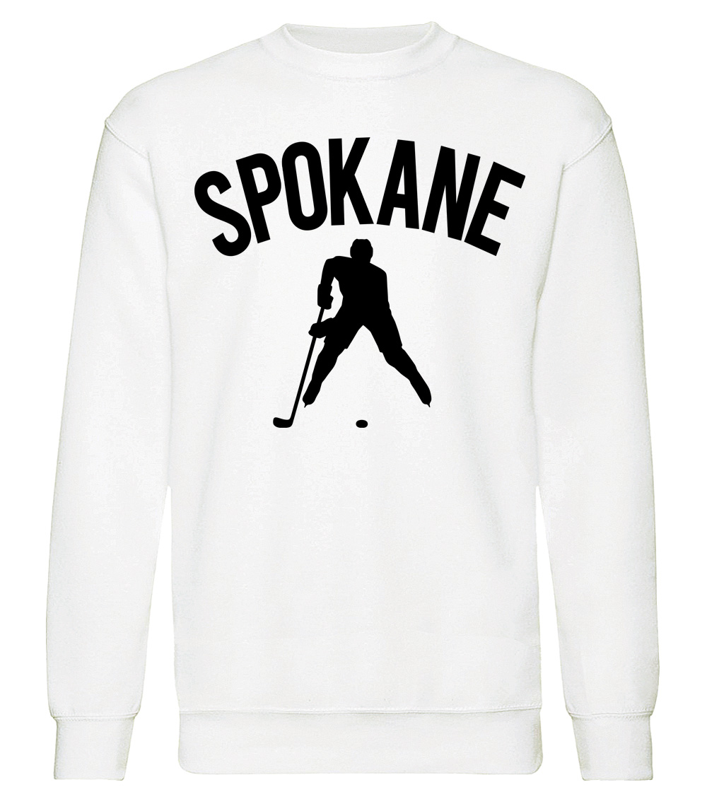 This premium blend sweatshirt proudly displays the hockey loving city of Spokane, USA in combination with our trademark silhouette. The fabric weight is 8.8 ounces and made from 65% ring spun cotton and 35% polyester. Wash on cold and air dry.