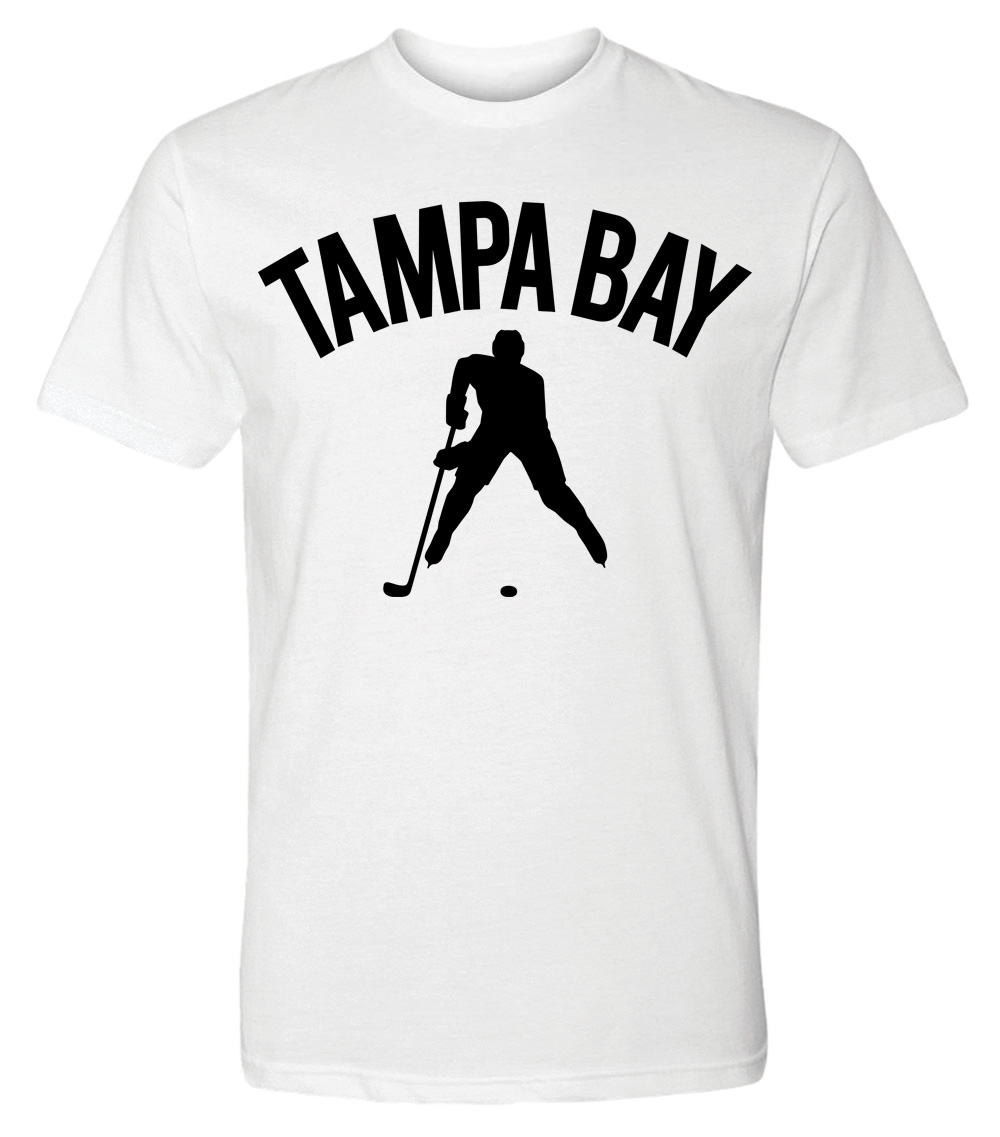 This premium tri-blend short sleeve shirt proudly displays the hockey loving city of Tampa Bay, USA in combination with our trademark silhouette. It's design #1 of 2 for Tampa Bay. The fabric weight is 4.5 ounces and made from 25% ring spun cotton, 25% rayon, and 50% polyester. Wash on cold and air dry.