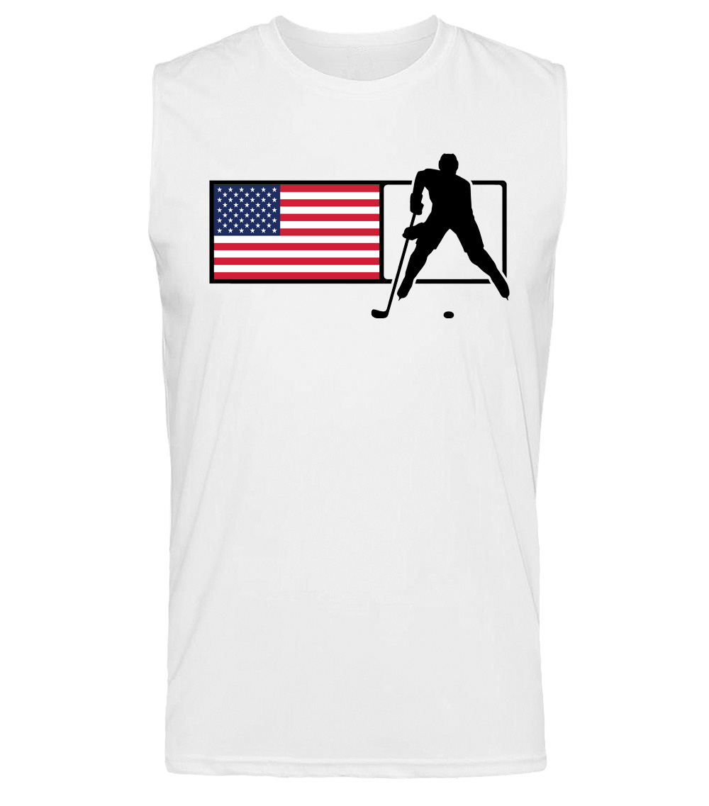 This premium sleeveless muscle shirt proudly displays the official country flag of the United States in combination with our trademark silhouette. The fabric weight is 4 ounces and made from 100% polyester. Wash on cold and air dry.