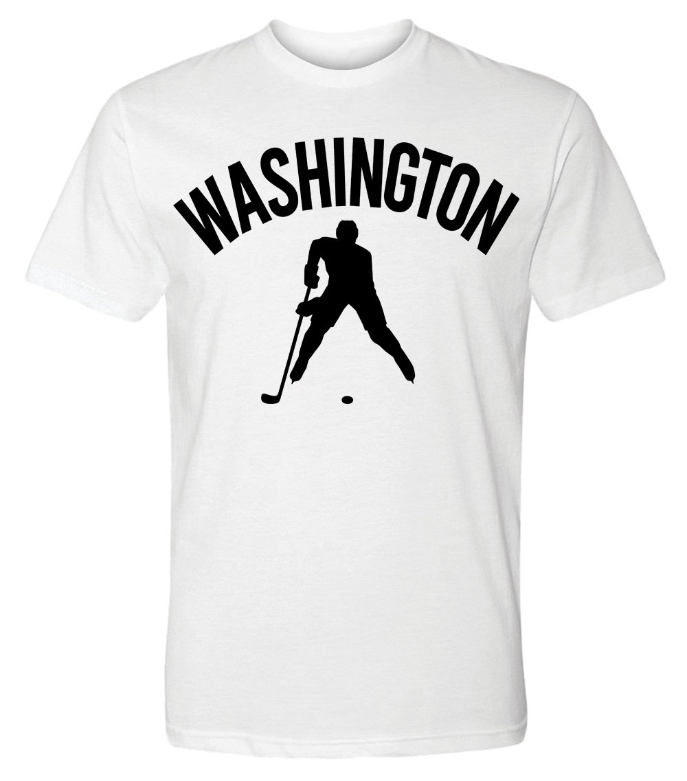 This premium tri-blend short sleeve shirt proudly displays the hockey loving city of Washington, USA in combination with our trademark silhouette. It's design #1 of 2 for Washington. The fabric weight is 4.5 ounces and made from 25% ring spun cotton, 25% rayon, and 50% polyester. Wash on cold and air dry.